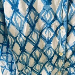 Mahogany, blue and white shirt, geometric pattern shirt, cotton button down, casual button-up, printed shirt, men’s shirt, breathable cotton, long sleeve shirt, relaxed fit, smart casual, stylish menswear, modern print, versatile top, crisp cotton shirt, unique pattern, boutique style, lightweight fabric, standout piece, everyday wear, eye-catching design, soft cotton, wardrobe essential, fresh look, cool and confident, creative dresser, trend-aware guy, bold yet refined style, someone who mixes classic and modern, laid-back but polished.