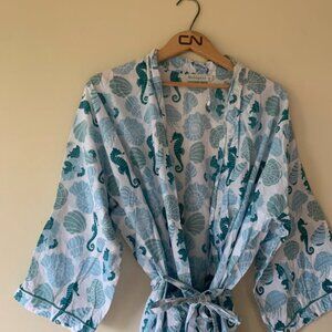 Mahogany Cotton sea themed dressing robe getting ready kimono style shells