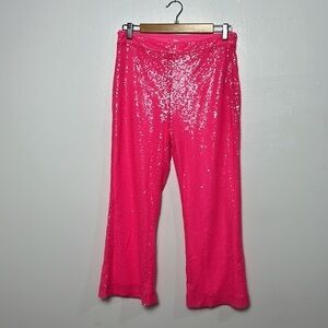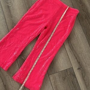 Main STRIP rhinestone crop cowboy sequin pants in fuchsia Medium