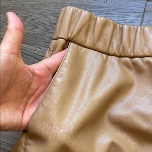 Stylish tan faux leather shorts. Perfect for casual outings.