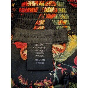 Maison Cinquecent Womens XS Top Black Floral Sheer Tie Front Smocked Mock Neck