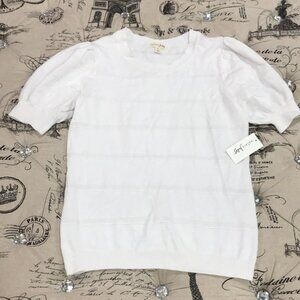 Short puffed sleeves create a uniquely beautiful silhouette in this update sweater from Maison Jules.
