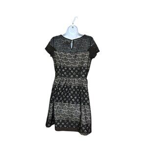 Maison Jules Womens Dress. Black Lace Polka Dot Whimsigoth Witchy Vibe. Elastic waist. Along the hemline underneath the lace is a hem of polka dots.