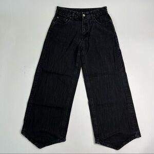 MM6 Maison Margiela Paris Black Wide Leg High Waisted Point Hem Cropped Jeans Pants