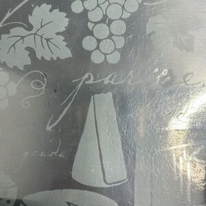 Elegant glass cheese board with grapevine design. Perfect for serving cheese and appetizers.