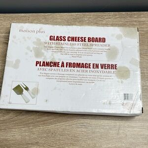 Maison Plus Glass Cheese Board Set Stainless Steel Spreader Fork Ceramic NIB