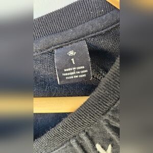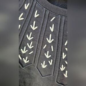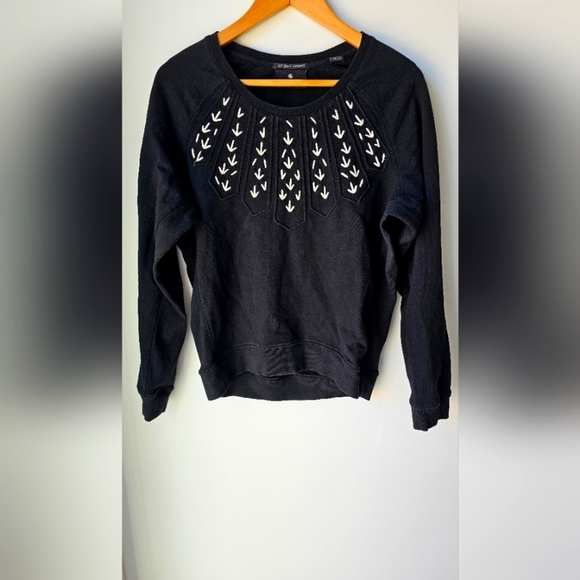 Stylish black sweatshirt featuring white embroidered patterns. Perfect for casual wear. Cocoon style, thick jersey cotton. Marked size 1, fits size S. Gently worn, washed.