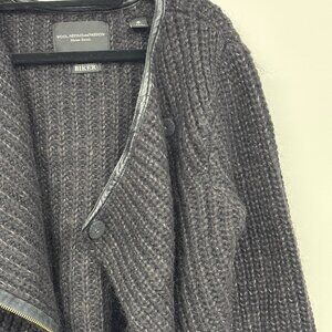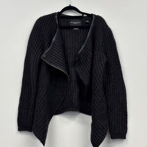Maison Scotch - Black Wool Biker Cardigan w/ Gold Fleck & Leather Trim | M/L