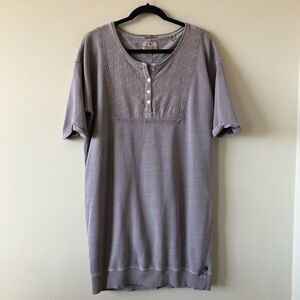 This sweater dress is a beautiful purple lilac colour with a embroidered lace bib and pearl iridescent buttons. A fall cozy, causal staple.