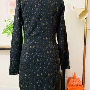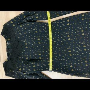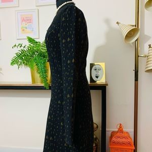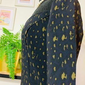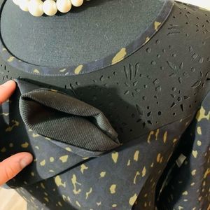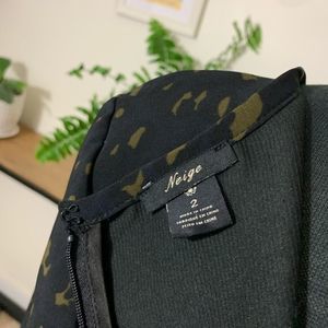 This sophisticated dress features a olive and black leopard print on a dark navy fabric (almost black), and a lace laser cut detail on the neckline. In excellent gently used condition (10/10) with no signs of wear or damage!