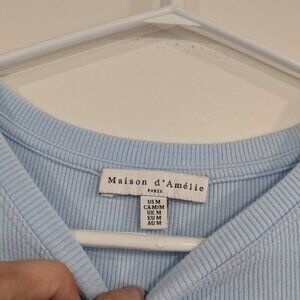 Maison d'Amelie Ribbed Modal T-Shirt Pale Blue Size Medium