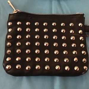 Silver studded, double sided, all black wristlet, wallet, pouch