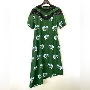 Maje Asymmetric Lace Trimmed Floral Print Dress