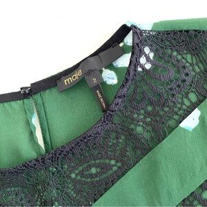 Maje Asymmetric Lace Trimmed Floral Print Dress