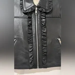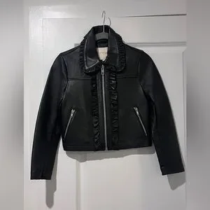 Maje Black Leather Ruffled Jacket