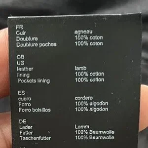 Fabric: 100% Lamb Leather; Lining 100% Cotton.