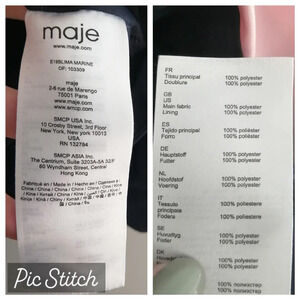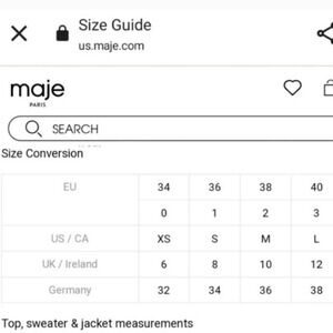 Model measurements: 5'10" height, 33" bust, 26" waist, 35.5" hips, wearing a Maje size 36"