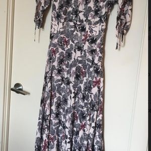 Measurements: PTP 16 - but definitely more room given drape/style. Length (shoulder to shortest length) 40, Length (shoulder to longest length) ~49. Waist has some elastic built-in on back of dress - and brings it in. Due to fabric and built-in elastic - some give. Happy to answer questions on fit.