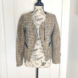 Maje Gray and Yellow Tweed Cropped Blazer, Size 36 β Modern Collarless Design
