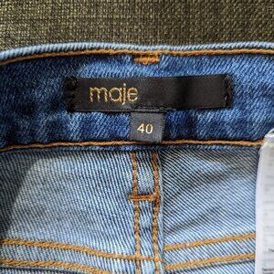 These high waisted Maje jeans are in very good used condition. No noted rips, holes, stains or tears. There is one spot with slightly more wear on the fly (see photo).