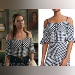 Maje Lapri Gingham Cropped Off Shoulder Top in Checkered black + white size 1 SP