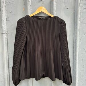 Maje accordion pleat blouse. Long sleeves, slight A frame silhouette, crew neck.