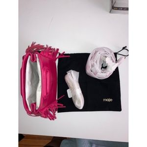 A signature Maje style, the M bag is defined by its square shape and fringed edges. Incorporating these features, this iteration arrives in a fuchsia-hued smooth leather construction.