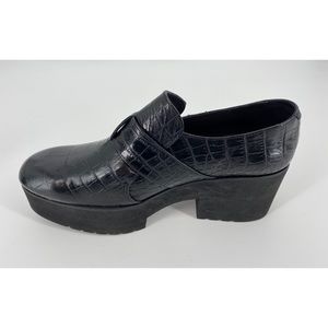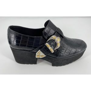 Maje NWOT Black Leather Platform Loafers with Silver Gold Buckle