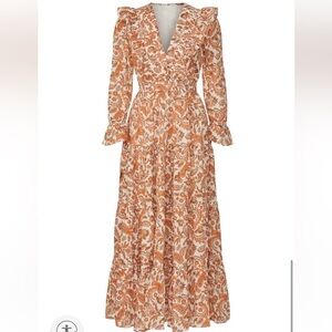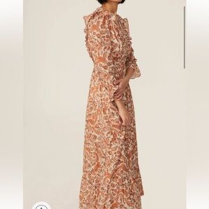 Maje Paisley Ruffled Maxi Dress Orange