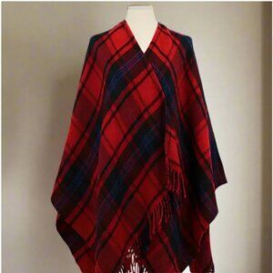 Sophisticate plaid print wool blend poncho. To wear over a coat or as a mid-season jacket.