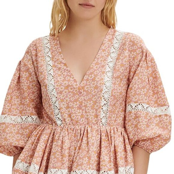 Main: 68% viscose/31% linen; interior: 100% viscose; buttons: 100% nacre; lace: 100% cotton