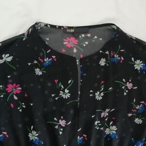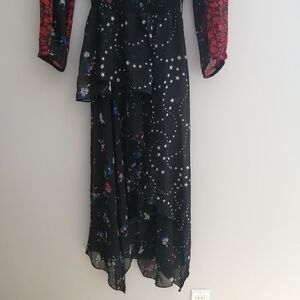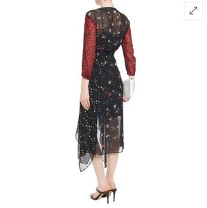 Maje Remix Asymmetric Paneled Floral Black Midi Dress 1 or Small