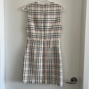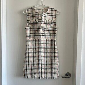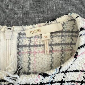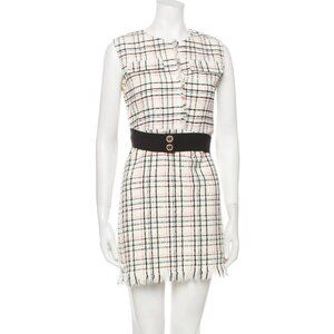 Maje Rianey Checked Cotton-Blend Tweed Mini Dress in Ecru