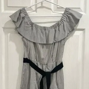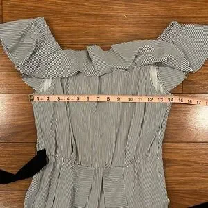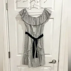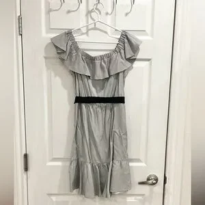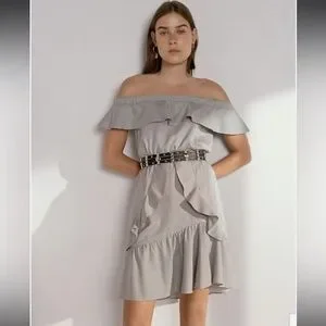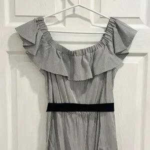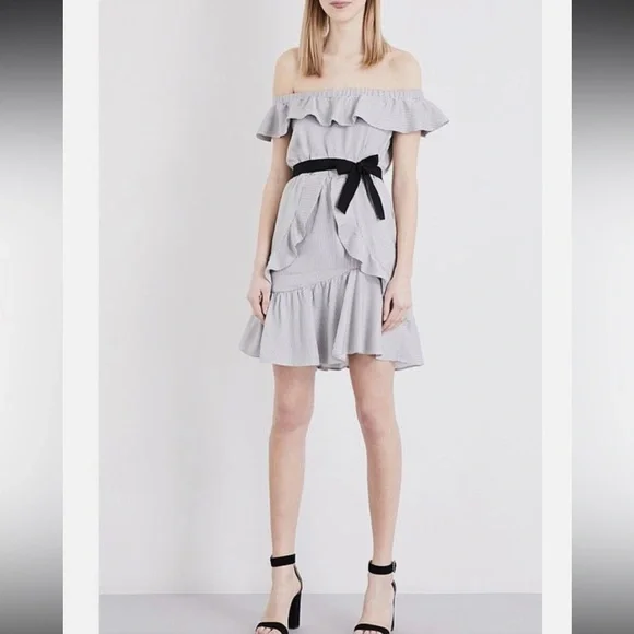 Maje Rigate Off Shoulder Striped Ruffle Dress