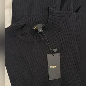 🆕 Maje Split & Contrasting Midi Ribbed Dress