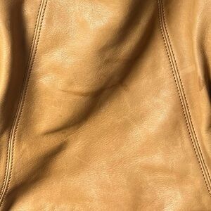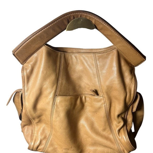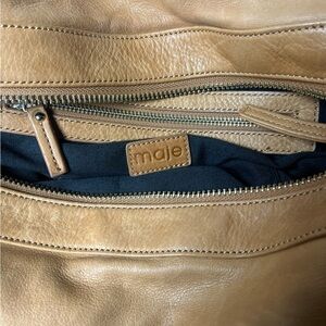 Chic tan leather bag by Maje. Sleek design. Ideal for everyday use.