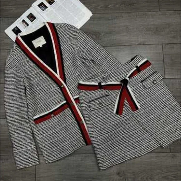 This set offers incredible versatility. Wear them together for a high-impact, coordinated look for brunch or a business meeting, or style the cardigan with distressed denim and the skirt with a simple black bodysuit to maximize your wardrobe.