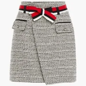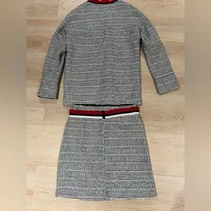 • Accent: Finished with signature red and white contrasting sporty bands that add a fresh, youthful pop to the monochromatic tweed.
