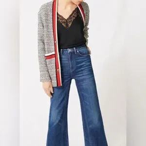 • Design: A structured yet comfortable tweed-effect jacket with a flattering deep V-neckline.