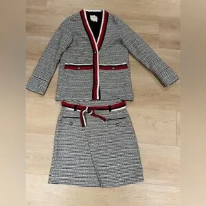 Embody the ultimate "French Girl" aesthetic with this stunning two-piece set from Maje. The Visala collection is a masterclass in modern preppy style, combining classic Chanel-inspired boucle with sporty, contemporary accents.