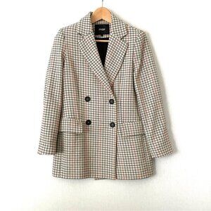 Maje Voldi Checked Double-Breasted Blazer Size 36 Small