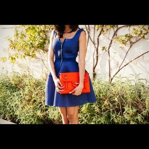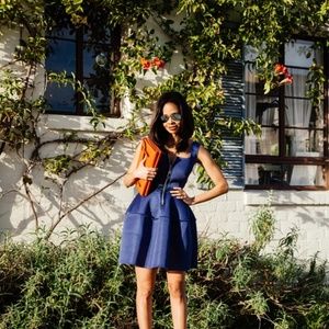 Maje blue colored mesh fit & flare dress with zipper front detail. This dress is a size 1 which is equal to a small. Armpit to armpit 16.5 inches Waist 26 inches Top to bottom 36 inches