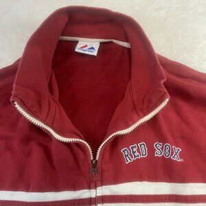 Majestic Baseball Boston Red Sox Striped Sweater Red Full Zip Up 2XL 100% Cotton