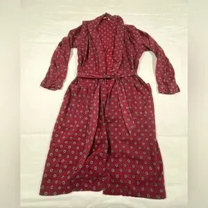 Stylish red robe with intricate patterns. Comfortable and elegant design. Perfect for lounging.