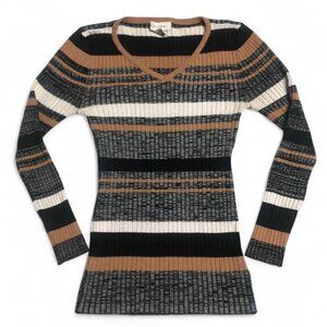 •2010s fitted ribbed knit striped neutral long sleeve by Majora 🎚️
