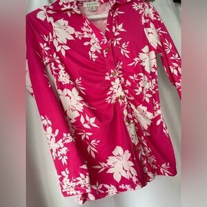 Majora Vibrant Pink Floral Women's button down gathered rouched Blouse size S