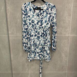 Majorelle- white and blue floral tie dress. Size Small.