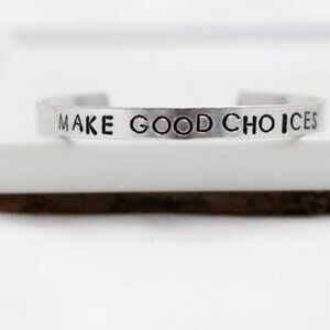 Make Good Choices - Hand Stamped Anodized Aluminum Bangle - Adjustable