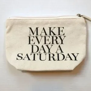 Brand new. "Make Every Day a Saturday" makeup bag. Zip closure. Durable soft canvas.