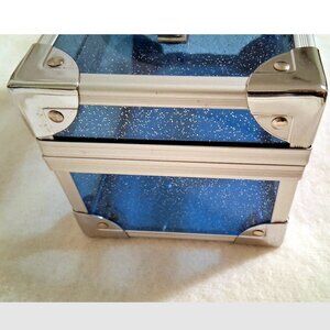 Makeup Storage Box, Blue Glitter Design, 7" x 4.5" x 4.5", Vintage Caboodles